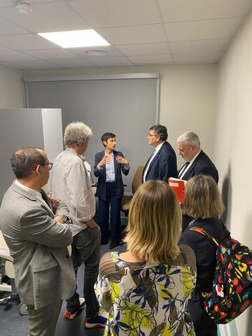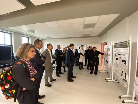 La visite s’est poursuivie dans l’après-midi au CHU Amiens-Picardie, et plus exactement dans le service du Pr. Fabrice Wallois : Explorations fonctionnelles du système nerveux pédiatrique. Aux côtés du Dr Sahar Moghimi, de nouveaux dispositifs de neuroimagerie pédiatrique ont été présentés, dont un inédit en France : la MEG (magnétoencéphalographie), technologie de pointe permettant d’enregistrer l’activité électromagnétique du cerveau.