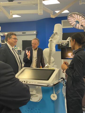 Enfin, la journée s’est conclue à l’Institut Faire Faces, en compagnie de son fondateur, le Pr. Devauchelle, et du Pr Testelin, directrice de CHIMÈRE (UR UPJV 7516). De jeunes chercheurs ont présenté leurs travaux, notamment autour de la modélisation de la biomécanique du visage, mais également les équipements de leur bloc opératoire.