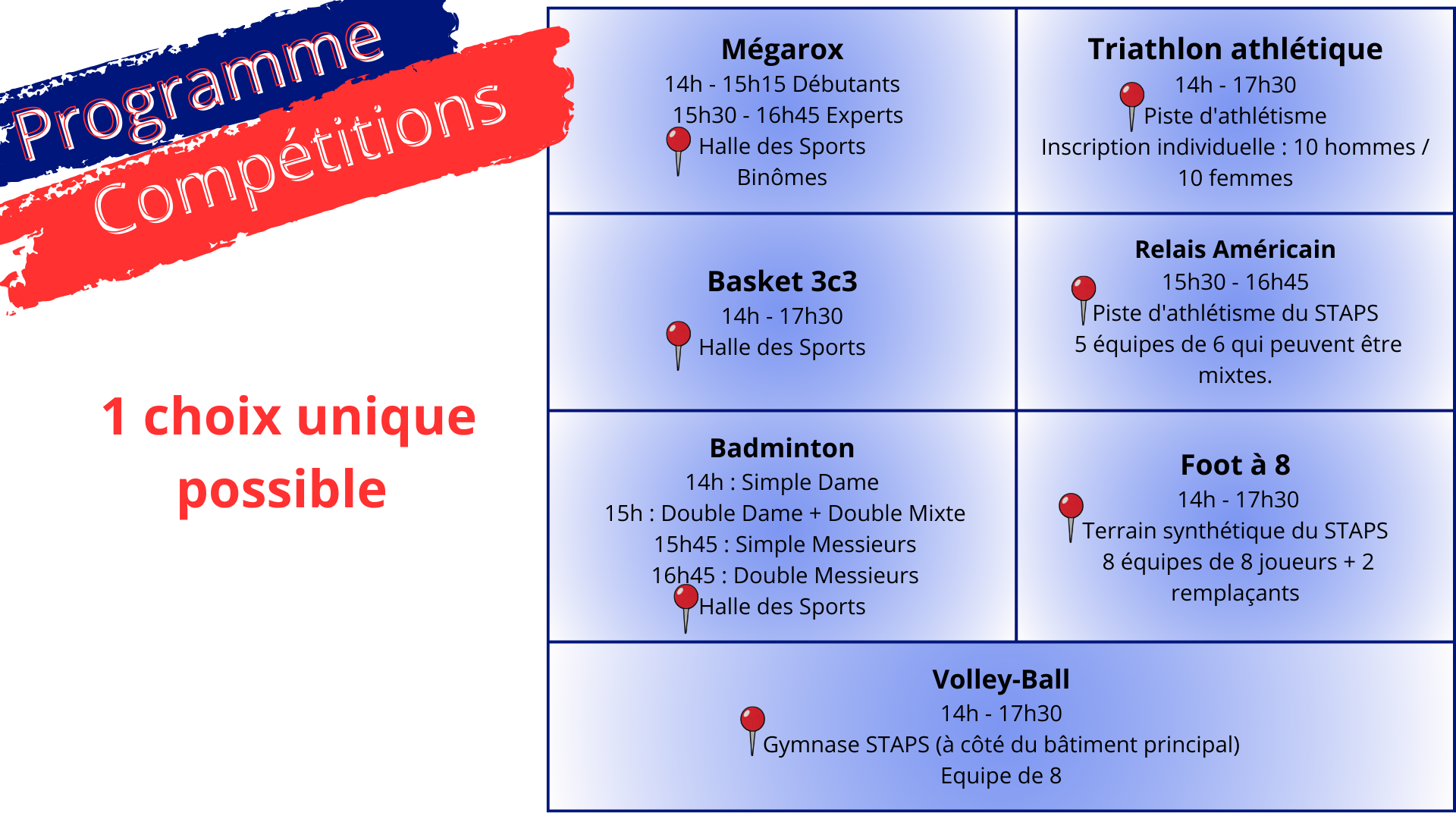 Organisés par le Service Universitaire des Activités Physiques et Sportives (SUAPS) en collaboration avec l’UFR de Sciences et Techniques des Activités Physiques et Sportives