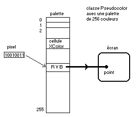 Colormap type des palettes de couleurs : tableau de structure XColor indicé par les pixels.